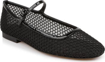 Mesh composition maximizes the modern romance of a mary jane flat complete with a well-cushioned footbed.