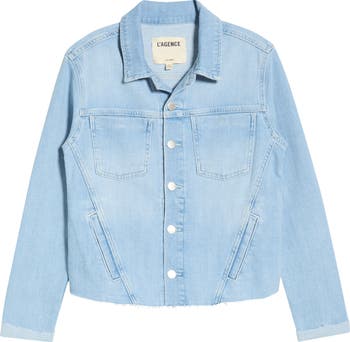 The closet-staple denim jacket gets a modern makeover with angled felled seams and slanted front pockets that create a slimmer, more flattering look. Other cool updates include raw-cut edges, folded cuffs and simpler patch pockets at the chest.