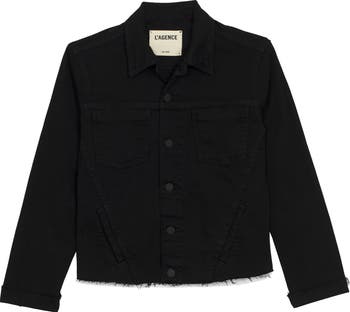 The closet-staple denim jacket gets a modern makeover with raw hems, angled felled seams and slant front pockets that create a slimmer, more flattering look.