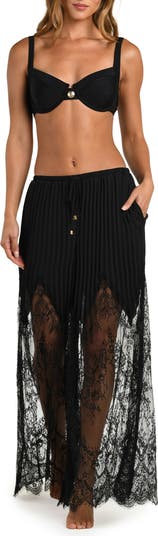 Lustrous pleats lead to the sheer lacy design on these flowy crepe pants that transition easily from beach to cocktails.