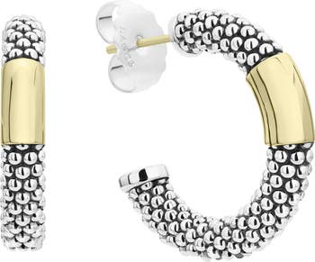 A luxurious take on everyday hoops, these are crafted with signature Caviar beading in sterling silver accented with a bar of gleaming 18-karat gold.
