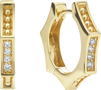 18K Gold Caviar Diamond Hexagon Hoop Earrings