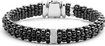 Ceramic caviar beads and a luminous station with pavé diamonds create a delightful study in contrast on a slender bracelet.