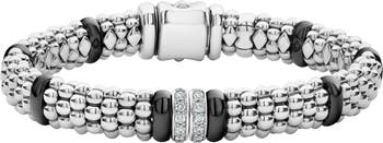 Two diamond-pavé links join glossy ceramic stations to add chic contrast to the sterling silver Caviar beads of this bold and beautiful bracelet.