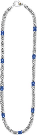 Ultramarine ceramic links evoke the crisp waters off the coastline on this collar necklace that shines with signature caviar beads.