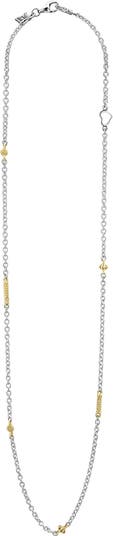 Designed to seamlessly elevate your everyday wardrobe, this glistening necklace features a sterling-silver ball chain punctuated with diminutive charms that range from an openwork heart to 18-karat gold baubles of Caviar beading.