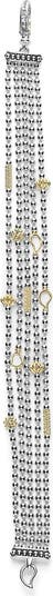 Diminutive 18-karat gold charms pepper the slender ball chains of a sterling-silver bracelet finished with a finely wrought lobster clasp closure.