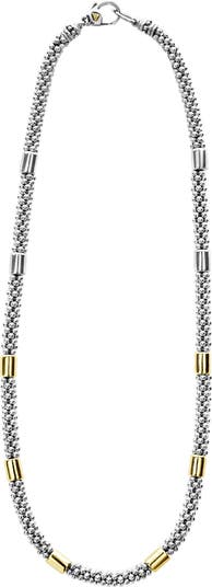 This sinuous necklace is handcrafted from a versatile mix of smooth gold bar stations and sterling silver with signature Caviar texture.