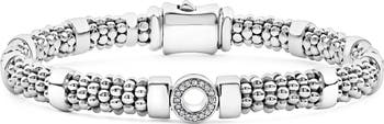 A centerpiece of diamond pavé brightens this rope bracelet crafted with signature caviar beading.