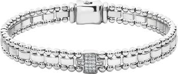 Designed to comfortably rest against your wrist for a lifetime of daily wear, this textured bracelet features Caviar beading and pavé diamond stations.