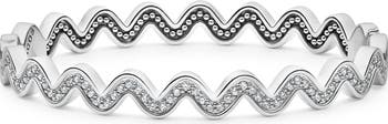 Ripples of shine define a bangle crafted from sterling silver and glinting with undulating lines of diamonds.