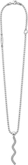 Ripples of shine define a pendant necklace crafted from sterling silver and glinting with undulating lines of diamonds.