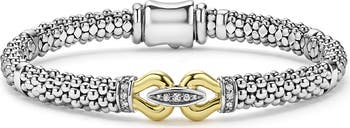 A buckle of diamonds and 18-karat gold makes a stunning centerpiece in this Caviar-beaded rope bracelet.