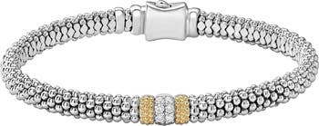 Elegant and contemporary, this weighty two-tone bracelet showcases sculptural Caviar beading and light-catching pavé diamonds.