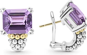 Amethyst brings rich color to these caviar-beaded half-hoop earrings featuring a versatile two-tone design.