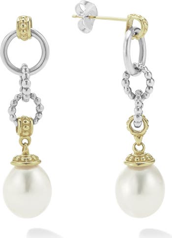 Signature Caviar beading details sterling silver and 18-karat gold in these intricate drop earrings anchored by freshwater pearls.