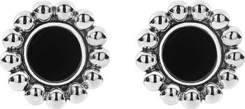 Bubbly silver beads frame inlays of deep, glossy onyx in these pretty and elegant studs sized for everyday wear.