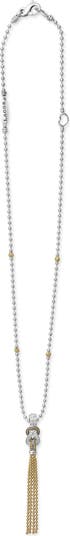 A beaded tassel swings below this nautical knot pendant necklace aglow with diamond pavé.