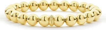 Designed to stretch for the perfect fit, this 18-karat-gold bracelet features a caviar charm that accents its glinting beads.