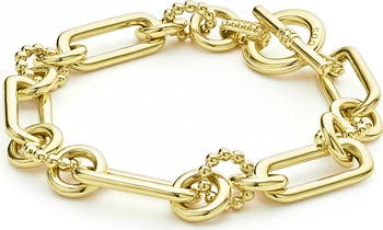 Gleaming 18-karat gold brings elegant illumination to a fluted toggle bracelet crafted with bold links and signature Caviar beading.
