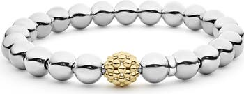 Add shine and texture to your look with this luminous stretch bracelet featuring 18-karat-gold caviar accents and sterling silver beads.