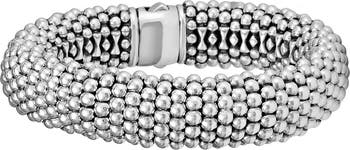 Bubbling silver adds reflective dimension and signature handiwork to a comfortable oval-fit bracelet with a gold-accented clasp.