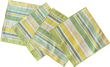 NEW to our cocktail napkin collection is the Lagos Stripe set. Painted in green and mustard tones tones, they are cool and sophisticated. Designed to be as versatile as they are beautiful. Style as is for the perfect cocktail napkin or fold for a casual lunch napkin. Sold as a set of 4 100% Linen 8x8 inches Machine wash cold and lay flat to dry