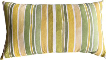 Painted in a mix of green, mustard yellow, and chartreuse stripes, this pattern is a beautiful as a pillow. Perfect for a living or bedroom. Mix and match with our Green Marble or Porto Print in Olive pilow. 12x20 inches 100% European linen Designed in NYC, Made in Portugal Hidden zipper enclosure Feather/Down Insert included Removable cover, machine wash cold, line dry or dry clean