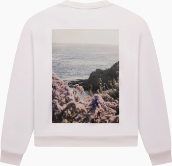 Oversized crewneck sweatshirt featuring a vintage-looking Laguna Beach, California photograph on the back.