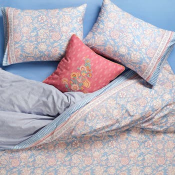 Inspired by the eclectic spirit of the Heritage collection, the Lahor 200 TC 100% cotton percale duvet cover full set brings authentic elegance to your bedroom. Traditional patterns are reimagined with a modern perspective, blending the enchanting stories of the past with today's sophisticated lifestyle. Crafted from 200 TC cotton percale, its 100% cotton percale fabric offers natural softness and breathability, while the meticulous details, produced in Pakistan, reflect exceptional craftsmanship with every touch. Infused with the warm and inviting essence of the Heritage collection, the Lahor set transforms your bedroom into a unique haven of style and comfort. This full set includes a duvet cover, a fitted sheet, and two pillowcases.