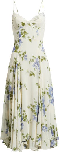 Light and floaty, this floral dress is designed with seamed cups and a lace-trimmed sweetheart neckline for softly defined shape. Adjustable straps and an asymmetric hem finish the breezy, movement-filled silhouette.