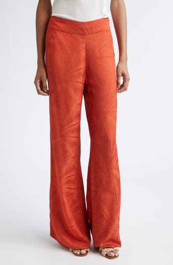 Laid Back Energy Palm Jacquard Wide Leg Satin Pants