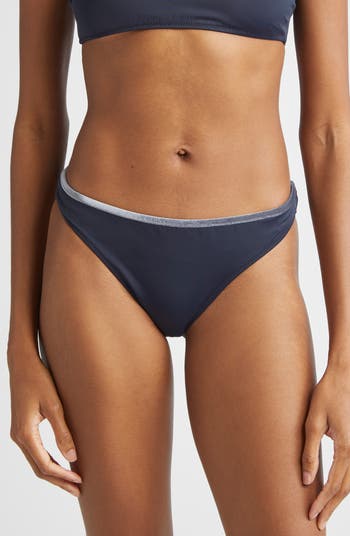 Tonal velvet trim lends quiet luster and an elevated update to these classic bikini bottoms.