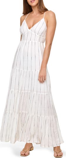 A lightweight, cotton-enhanced blend keeps you feeling breezy in this tiered maxi dress with a seamed Empire waist that enhances your curves.
