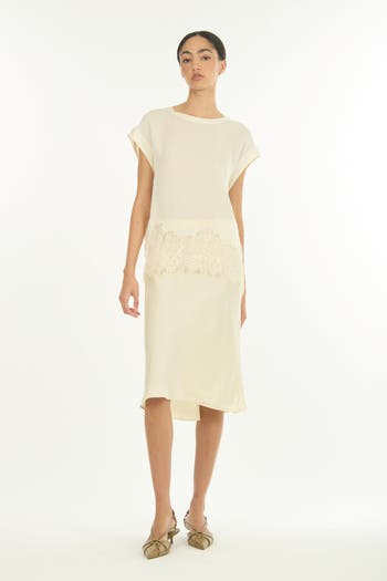 Secret Mission's Lainey Midi Skirt is crafted from 100% sand-washed silk, bias-cut to offer a soft matte finish with a fluid, body-skimming drape. Designed with a classic A-line silhouette, it skims the hips before falling to a flattering midi length. The elasticated waistband provides ease and comfort, making it a refined wardrobe essential. Lower-Impact Materials. Find out more about our sustainability criteria on the Secret Mission website.