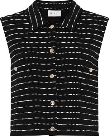 Dash-textured stripes pop from this sleeveless knit top elevated by gleaming front buttons and handy patch pockets.