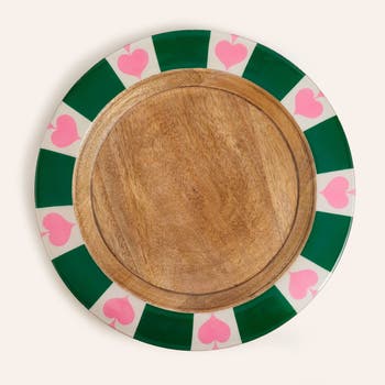 Every table is a stage, every serving a little celebration. The 13" Lakri charger plate from the Cheerland collection adds warmth and joy to your setting with its colorful rim and the natural texture of mango wood. Handcrafted by skilled artisans in India, this wooden charger is more than just a serving base. It is an essential piece for every cheerful moment. Its hand-finished surface, surrounded by original patterns created by the Zsa Zsa Zsu Design Team, transforms even the simplest dish into a festive display. A decorative and functional choice for anyone looking for a vibrant charger plate. Perfect for brunches, birthday dinners, coffee mornings or spontaneous get-togethers.