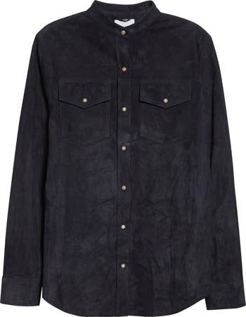 The Milanese label leans into quiet luxury with this snap-front overshirt cut in lambskin suede that feels supple, velvety and richly tactile.