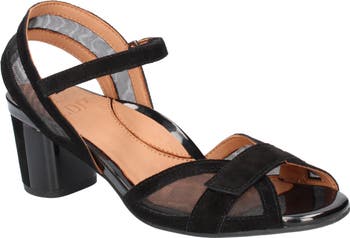 Mesh insets add a flash of modern romance to a block-heel sandal complete with arch support and memory foam cushioning for everyday comfort.