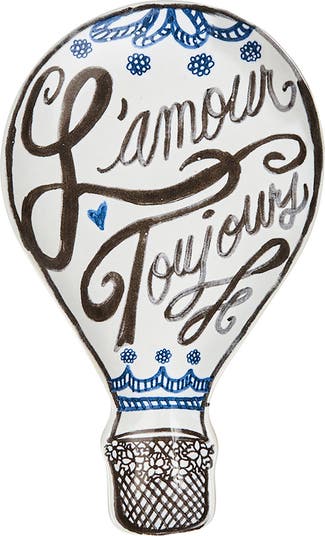 Put a little love into everything you serve on this whimsical plate crafted in Portugal from fine stoneware ceramic and emblazoned with the French for love forever.