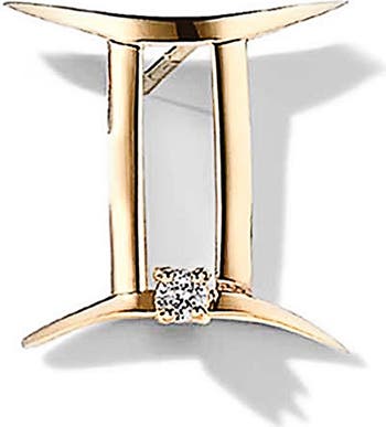 A petite diamond adds shine to your sign on this single stud earring crafted from 14-karat gold.