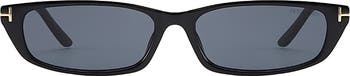 Gleaming hardware details the hinges of everyday sunnies shaped in a slender rectangular silhouette.