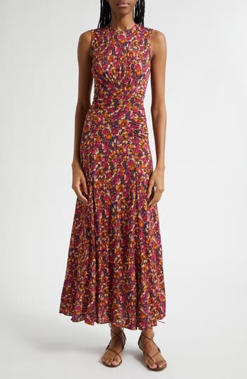Lana Floral Print Ruched Sleeveless Maxi Dress