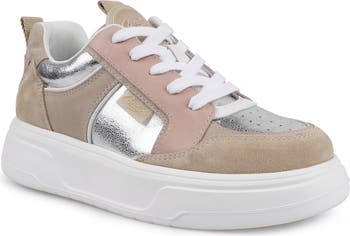 Sporty style goes glam with this lace-up platform sneaker complete with flashy metallic accents.