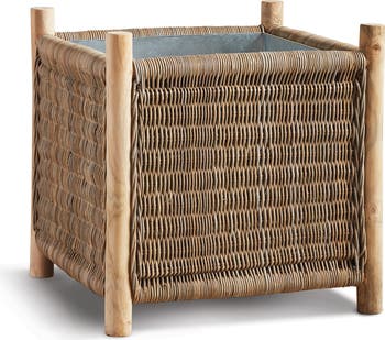 Talk about grand scale! This well-constructed planter has all the bells & whistles. A removable zinc galvanized liner, teak legs, organic all-natural materials, it is quite the statement piece. And did we mention scale?