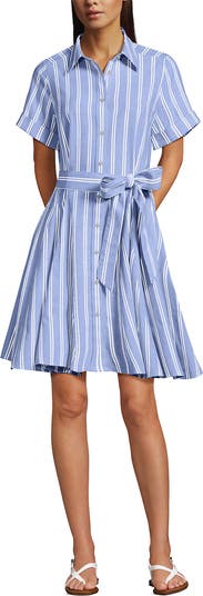 This linen-blend button-front dress brings together clean lines and easy comfort in one flattering, knee-length silhouette. A crisp collar and short sleeves give it a tailored feel, while godet panels add soft movement that keeps it from feeling stiff or predictable. Wear it belted for a more defined shape or loose for a relaxed look – either way, it's breathable, versatile and feels just as good as it looks on warm days.