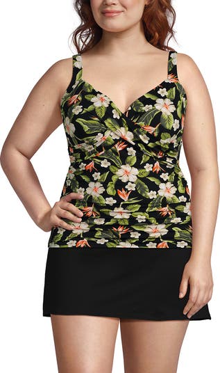 This tankini top provides coverage while showcasing your style. The eye-catching wrap front accentuates the bust, and the V-shaped neckline draws the eyes upward and elongates the body. Chlorine-resistant fabric helps this top keep its shape and UPF 50 protects you from harmful rays, wherever the day leads.