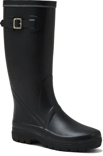 It takes something extra to be called Squall. To join the Squall line, our new Buckle Tall Rain Boot is designed to check all the boxes. You'll be singing in the rain with boots featuring a 13.5-inch shaft height, low heel, waterproof rubber outsole, soft cotton upper lining and a cushioned foam sock insole for added comfort. This classic design is crafted from durable waterproof rubber and features a decorative metal buckle. Pair it beautifully with our Squall rain jacket or waterproof raincoat and leggings—or your pet's Squall jacket for those rain-soaked dog walks. Even a long flowy dress pairs beautifully with these boots during the rainy yet warm seasons. These boots also feature a reflective strip that provides visibility even on the cloudiest day. Why stay inside when our tall rain boot can keep you dry and warm no matter how wet it gets. Choose from three colors: Black, Deep Sea Navy and Fresh Evergreen.