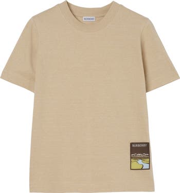 A crew-neck T-shirt in cotton melange jersey, cut to a regular fit. The style features our landscape label, inspired by a 1993 archival campaign and its slogan: ‘Burberrys grew out of the country life.'||Rib-knit neckline