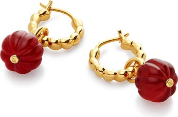 Hand-carved from translucent red onyx designed to glow as the light passes through, these lantern drop earrings symbolize new beginnings.